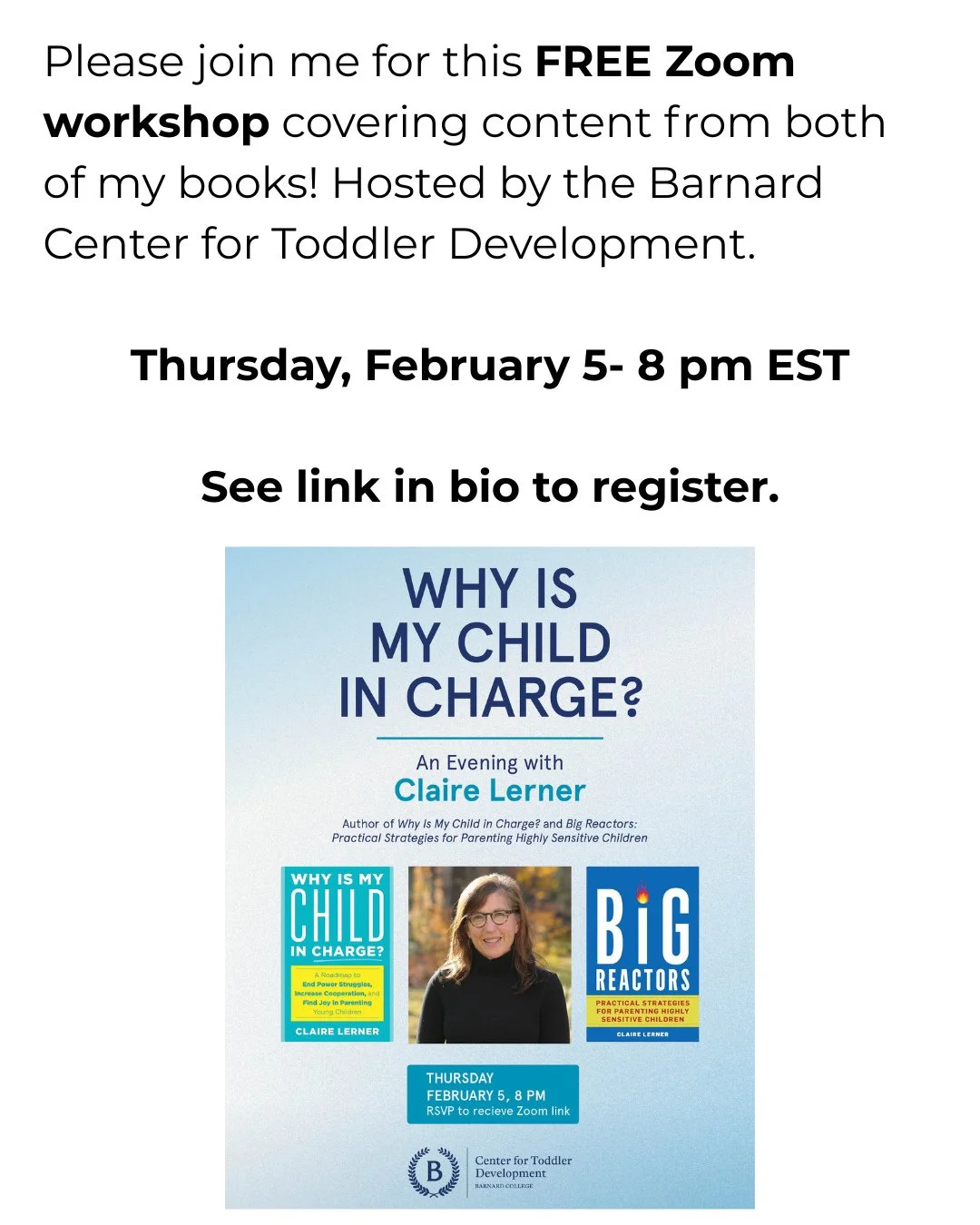 My books, Why Is My Child In Charge? A Roadmap to End Power Struggles, Increase Cooperation and Find Joy In Parenting and my latest book, Big Reactors: Practical Strategies for Parenting Highly Sensitive Children also provide practical, real-world guidance that will help you be the loving, calm, connected parent you want to be while setting the clear limits and boundaries your kids need to thrive.